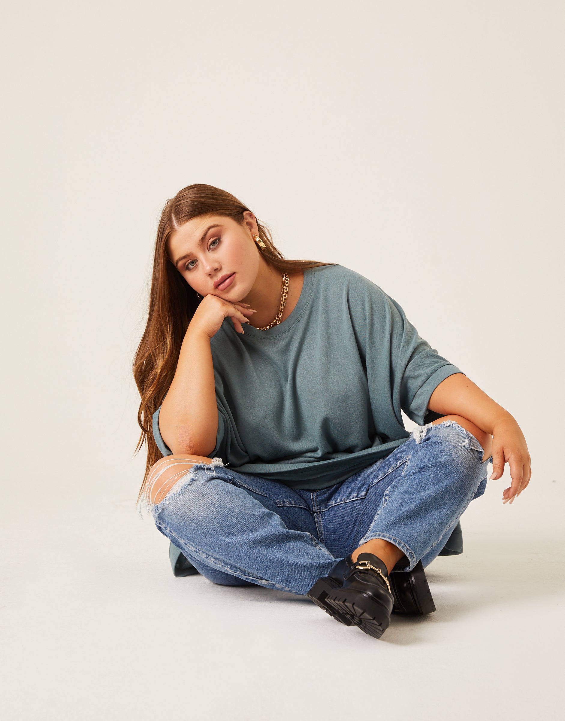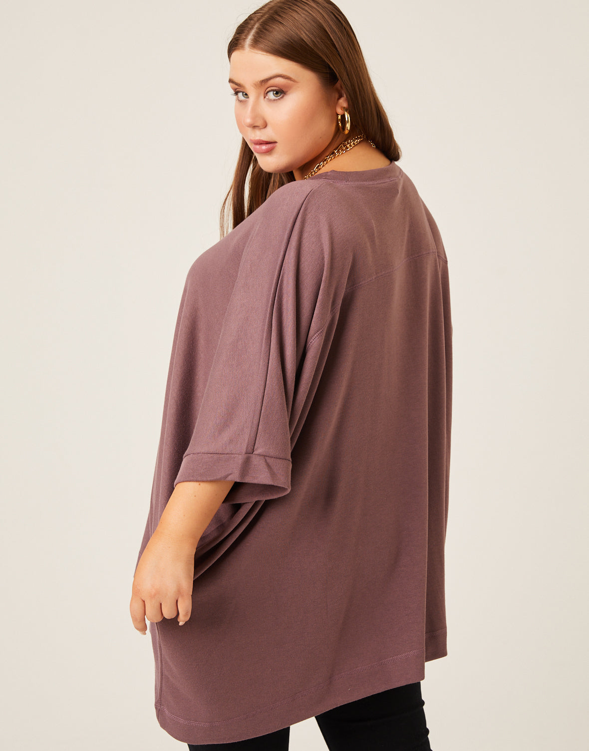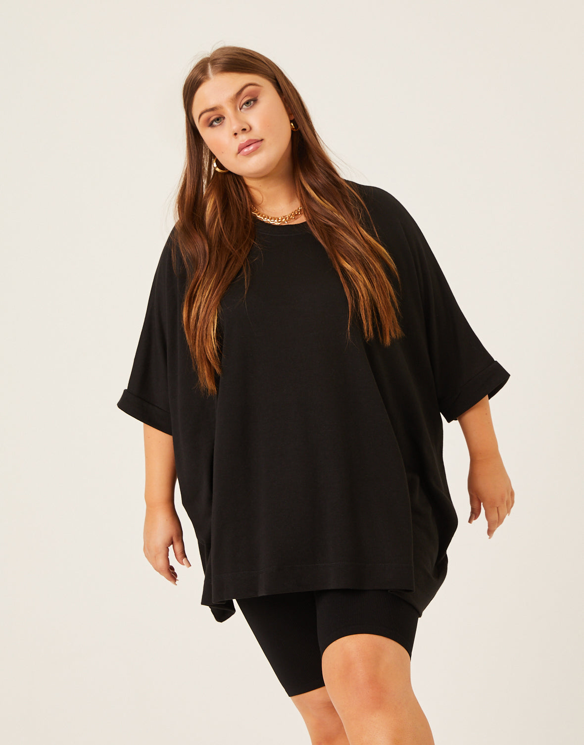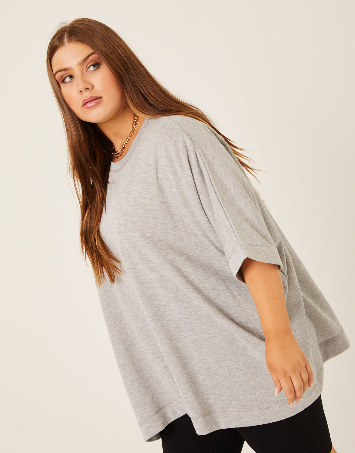 A great basic, the?Plus Size Crewneck Oversized Knit Tee is the best?thing to throw on whenever you need something simple. This oversized, plus size t-shirt is an instant classic and?easy to wear with a comfy pair of for the ultimate loungewear outfit.