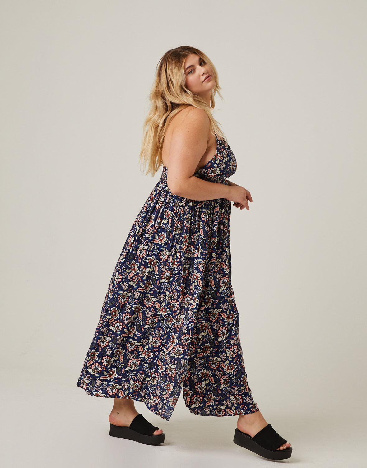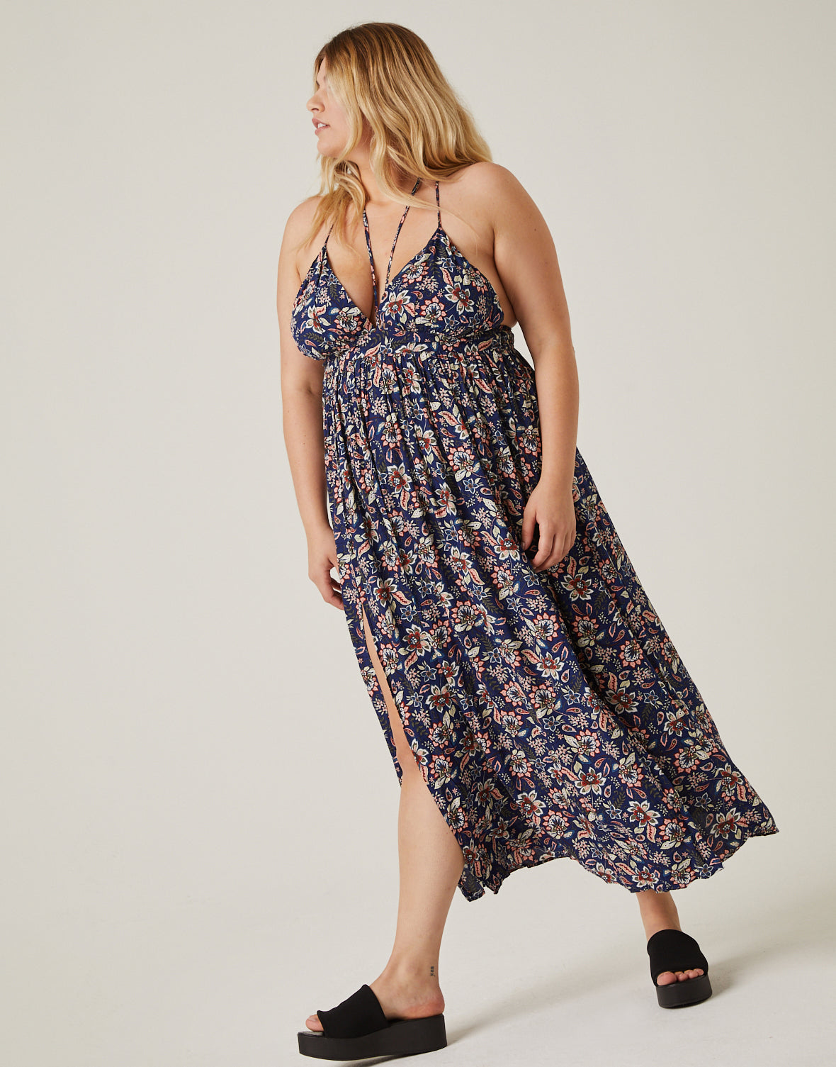 A romantic floral print decorates the feminine?Curve Paisley Floral Tank Maxi Dress.