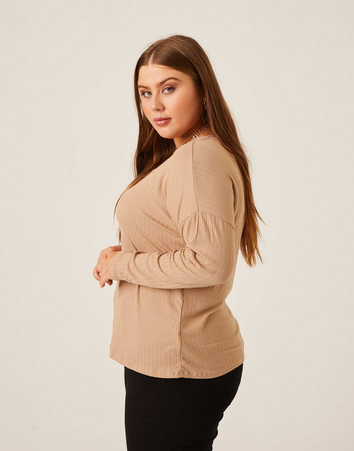 The super comfortable?Curve Rib Knit Long Sleeve Top is exactly what you want, need, and expect from a comfy shirt.