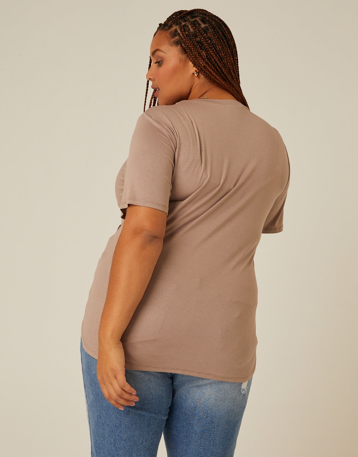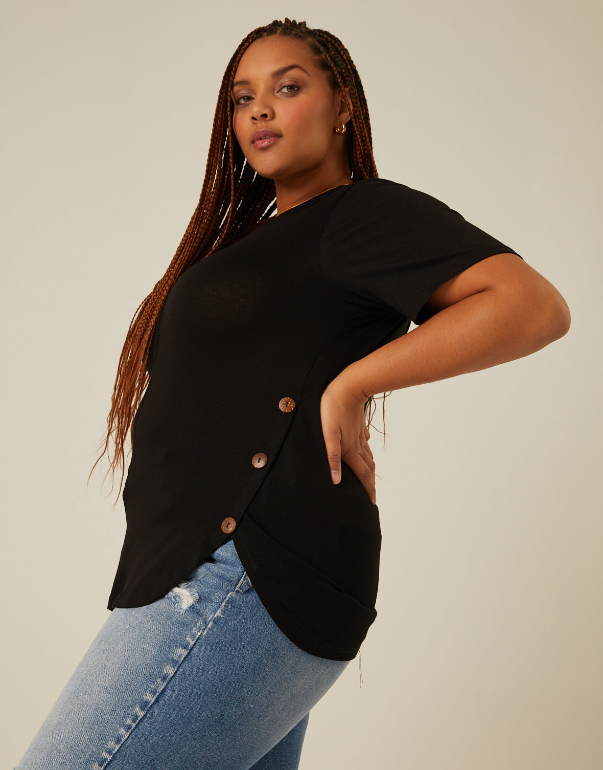 The?Curve Side Button Tee is simple and easy, perfect for?everyday outfits.