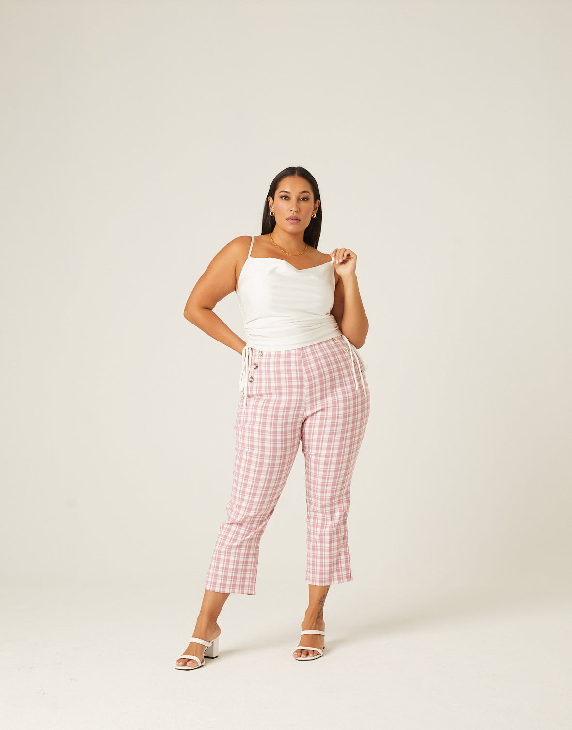 The Curve Stretchy Plaid Pants are great for work outfits,?semi-causal?events, or even just beach days.