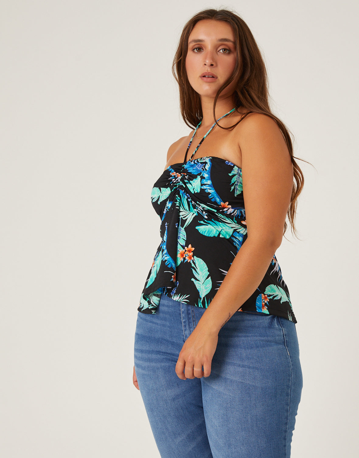 A classic, beachy top, the?Curve Tropical Ruched Halter Top is a stunning piece to take on vacation.