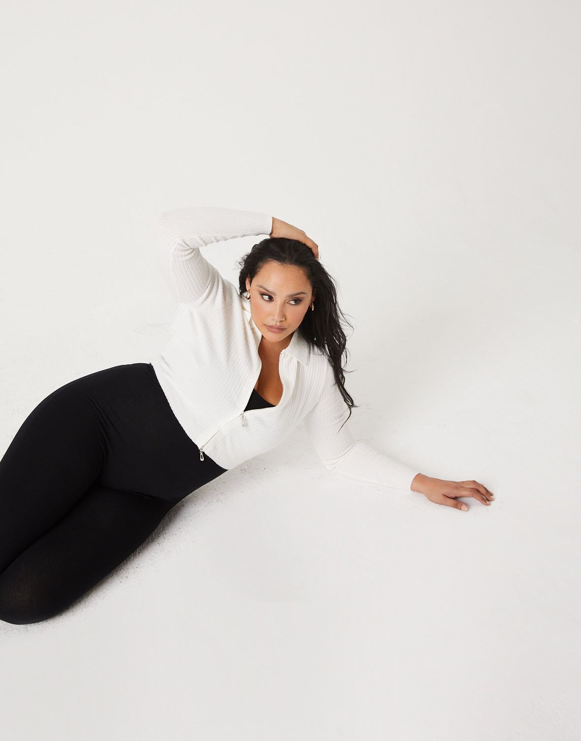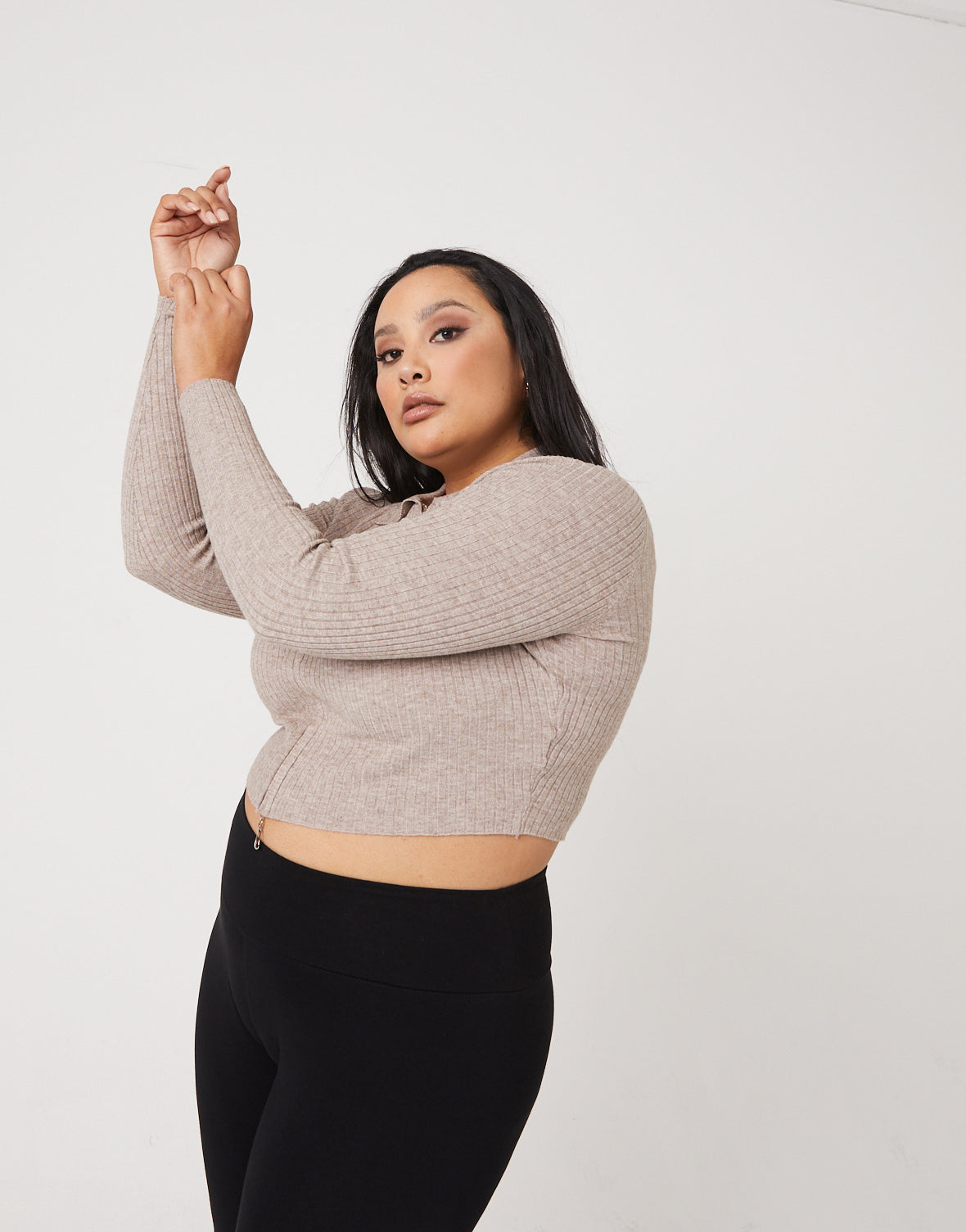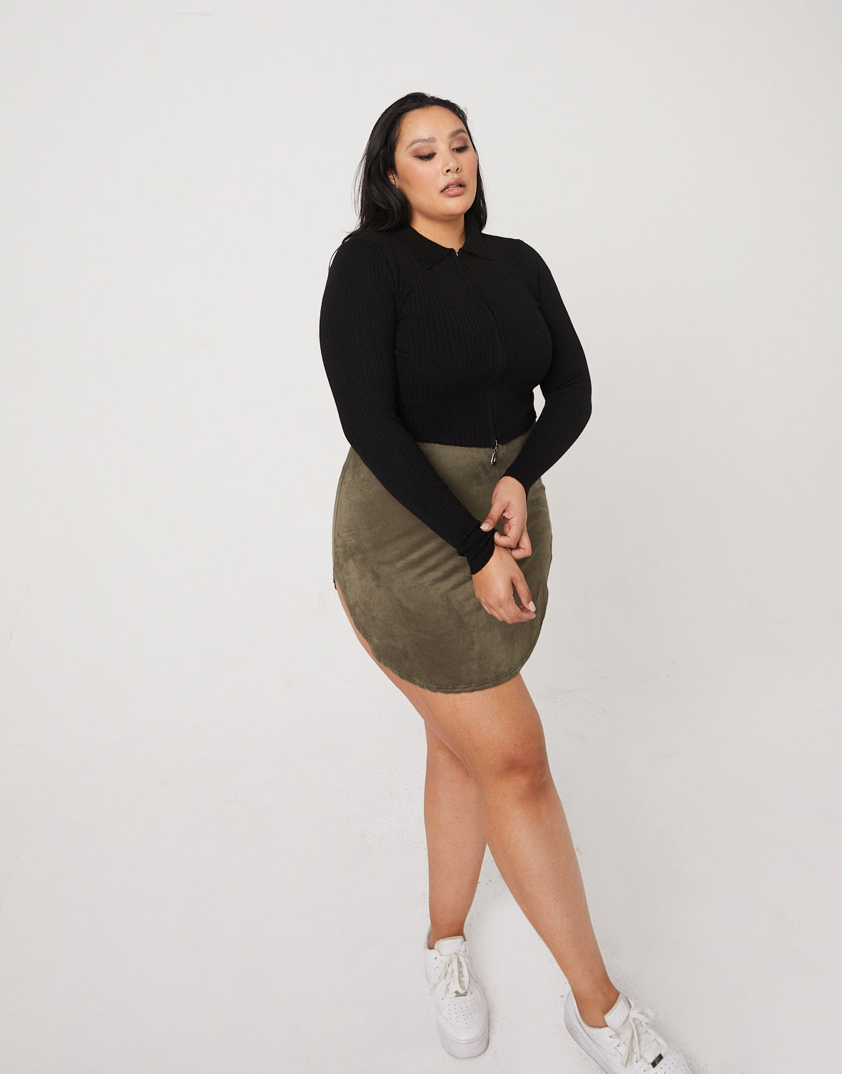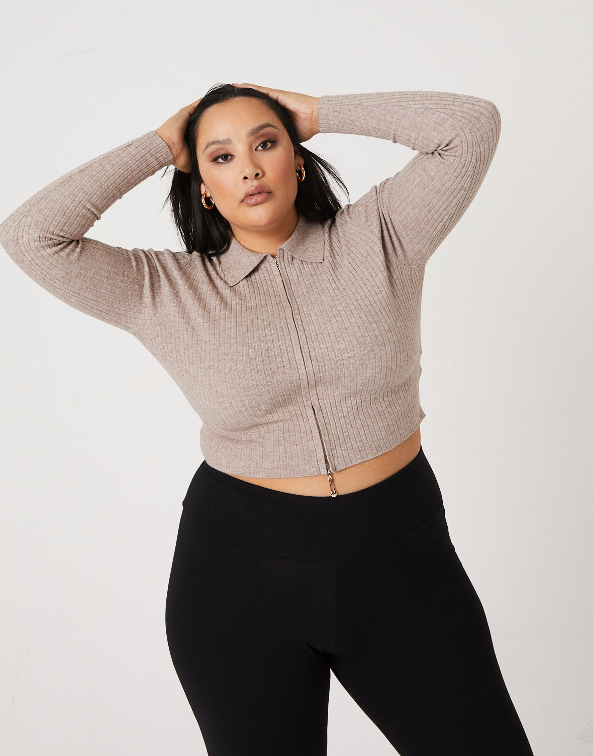 We feel so trendy and cute in the new Curve Zip Up Crop Top!