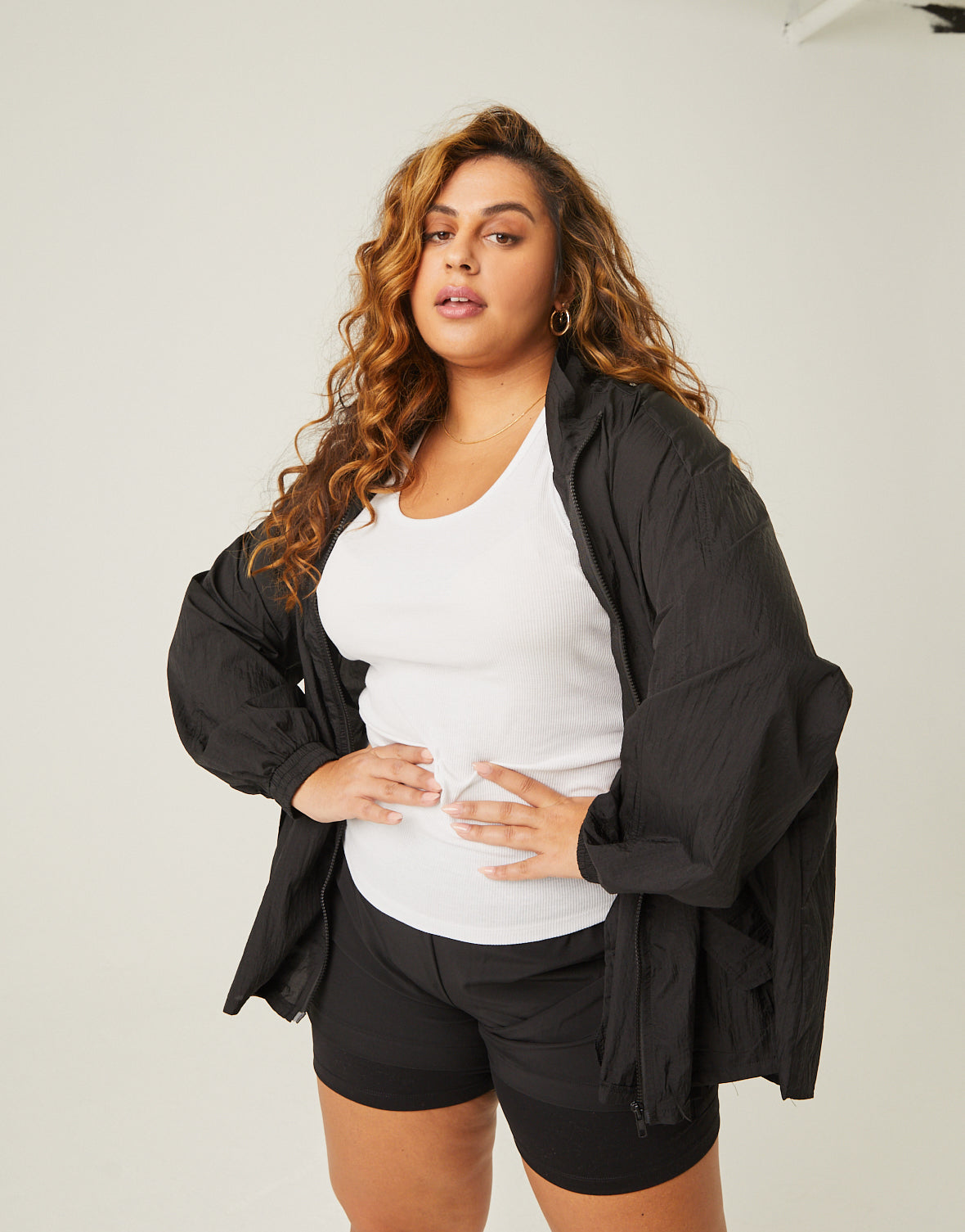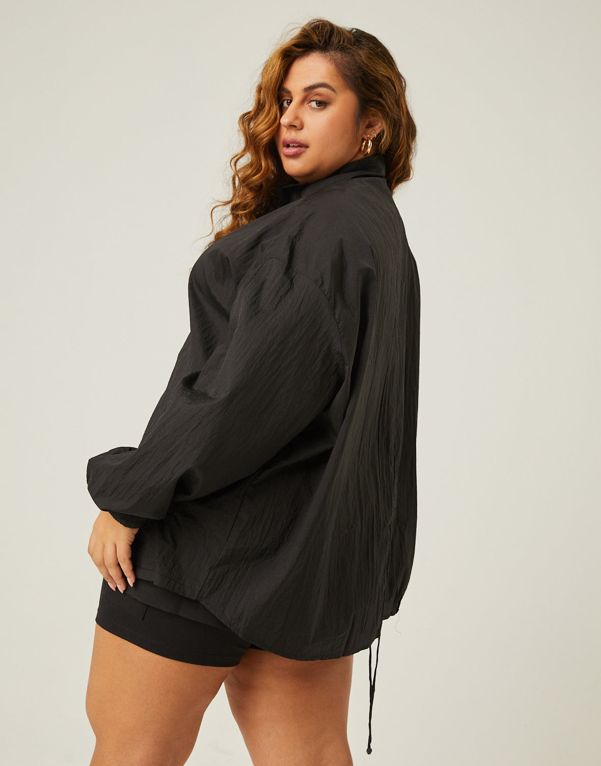 Plus Size Zip Up Windbreaker Jacket