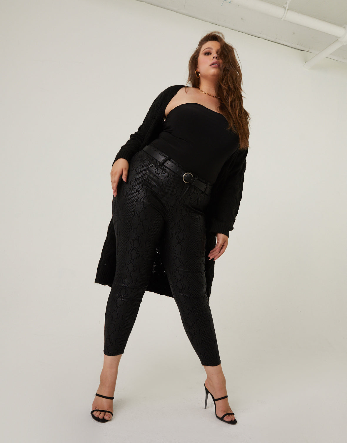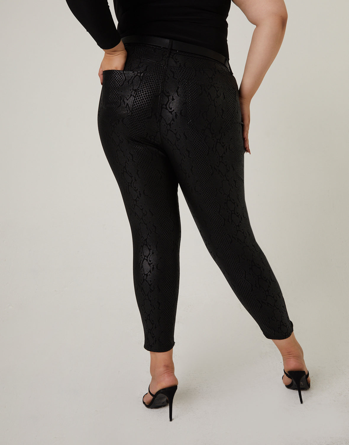 - These trendy pants?feature a subtle snake texture, belt loops, a zipper fly, and a cropped leg.